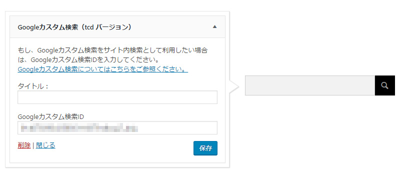 IDを入力するだけでGoogleカスタム検索と連動させることができるオリジナルウィジェット「Googleカスタム検索」をご用意しました。