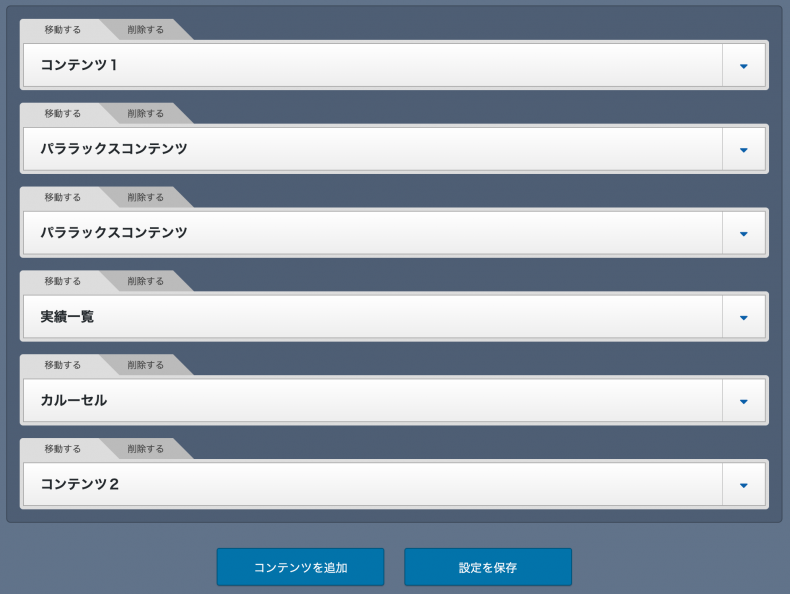 各項目の表示/非表示はチェックを入れたり、外したりするだけですので、あとからでも簡単に変更できます。設定が完了したら実際にトップページを見て仕上がりを確認してみましょう。コンテンツの順序を変更したい場合は、設定画面の項目の見出しをドラッグ&ドロップすると即時に適用されます。