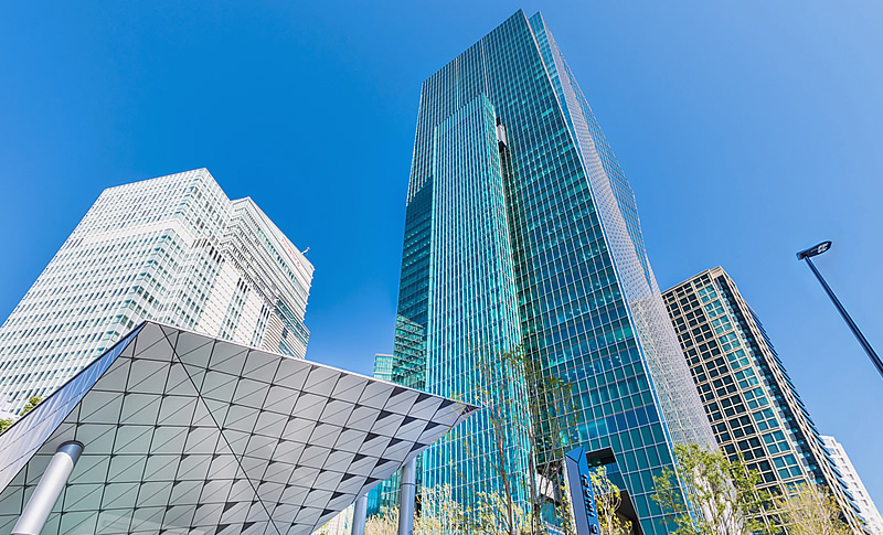 日本橋FKビルディングは東京オフィスビルの中でも5本指に入る大型ビルで、地上35階建て、基準となるフロアは1000坪超える広さとなっており、最大級の規模を誇ります。採光が良く入るエントランスやロビーは開放感があり、外観に似合った大きい内覧も特徴です。1・2階にコンビニや銀行ATM、郵便局などが入っており、3階から最上階までがすべてオフィスフロアなため、機械警備システムなども完備されています。
