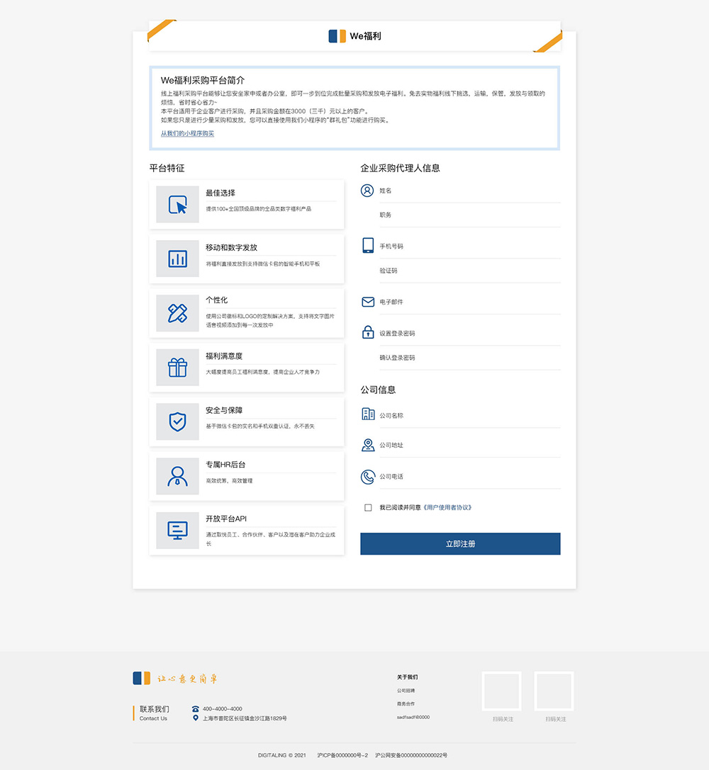 w1901-psd公司企业站形象展示营销推广落地页平台首页主页ui设计模板源文件下载蓝色企业用户注册