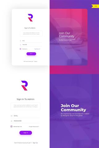 w683-xd社交网站登录注册页ui设计模板源文件下载绚丽紫色创意