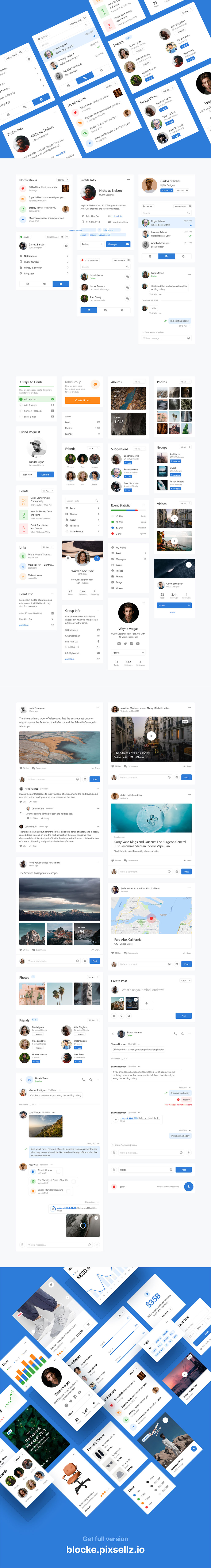 w1127-xd社交蓝色简洁网站组件模板UI设计素材源文件下载