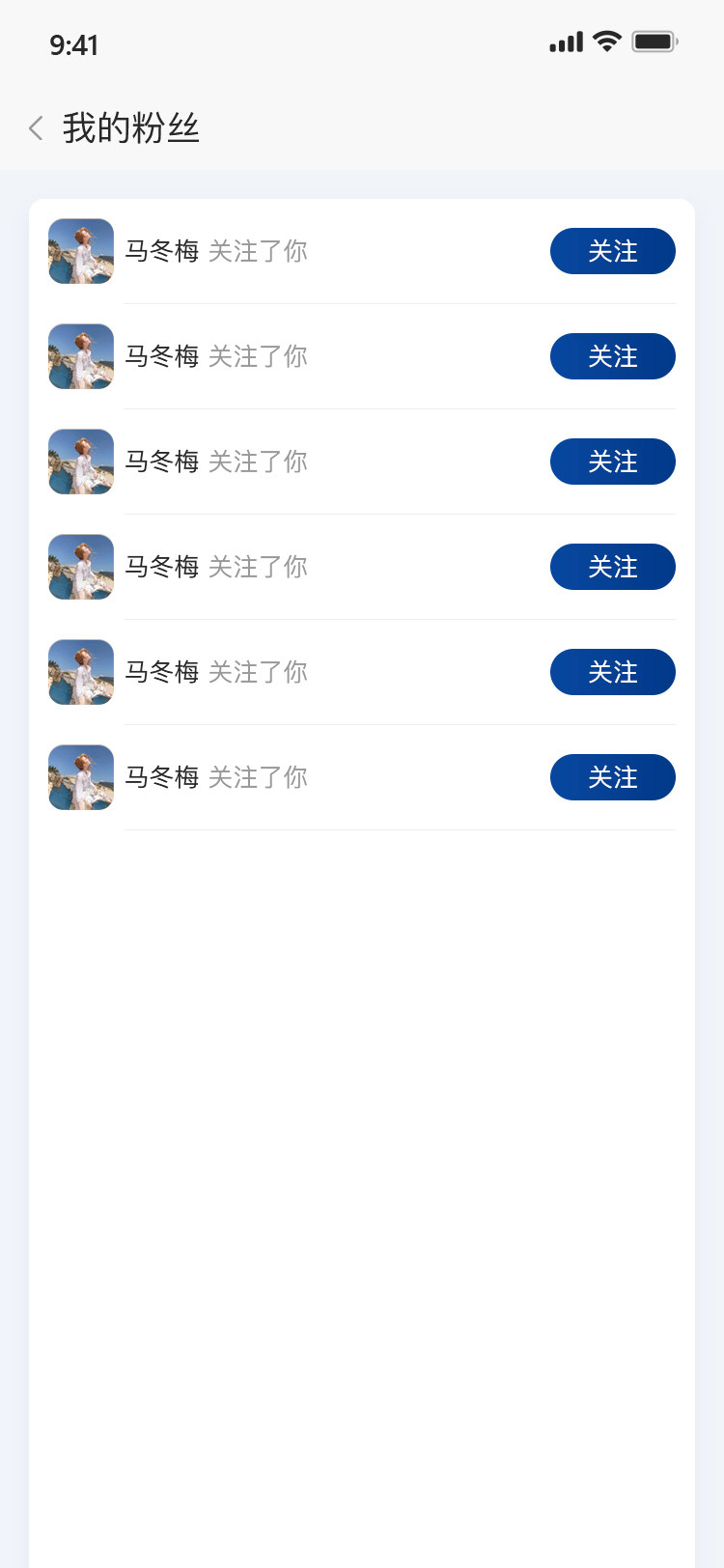 y4405-psd蓝色商务ui设计模板源文件下载小程序我的关注列表页