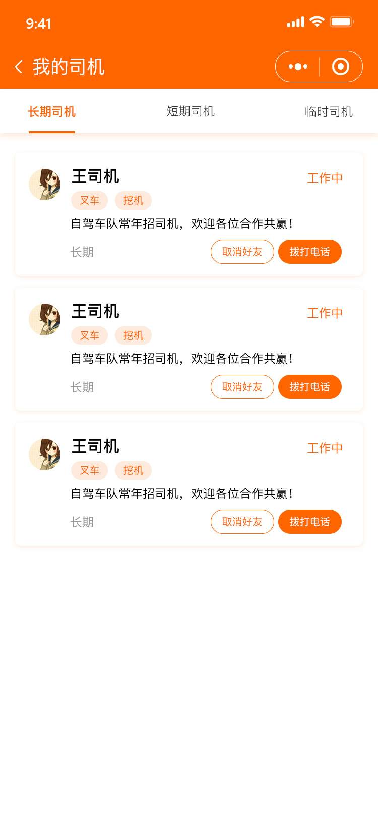 y3926-psd橙色ui设计模板源文件下载手机app移动端微信小程序我的司机列表页