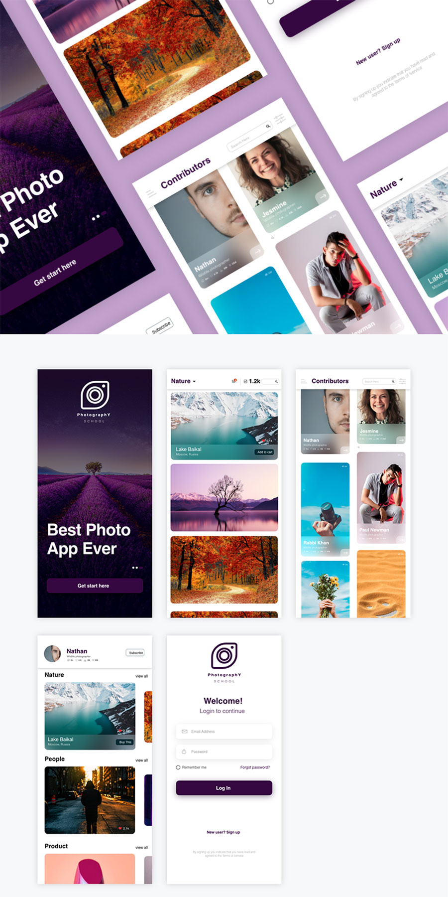 y1131-xd图片社交紫色UI设计启动页引导页列表页首页展示页登录页APP简洁设计素材源文件下载时尚登录注册