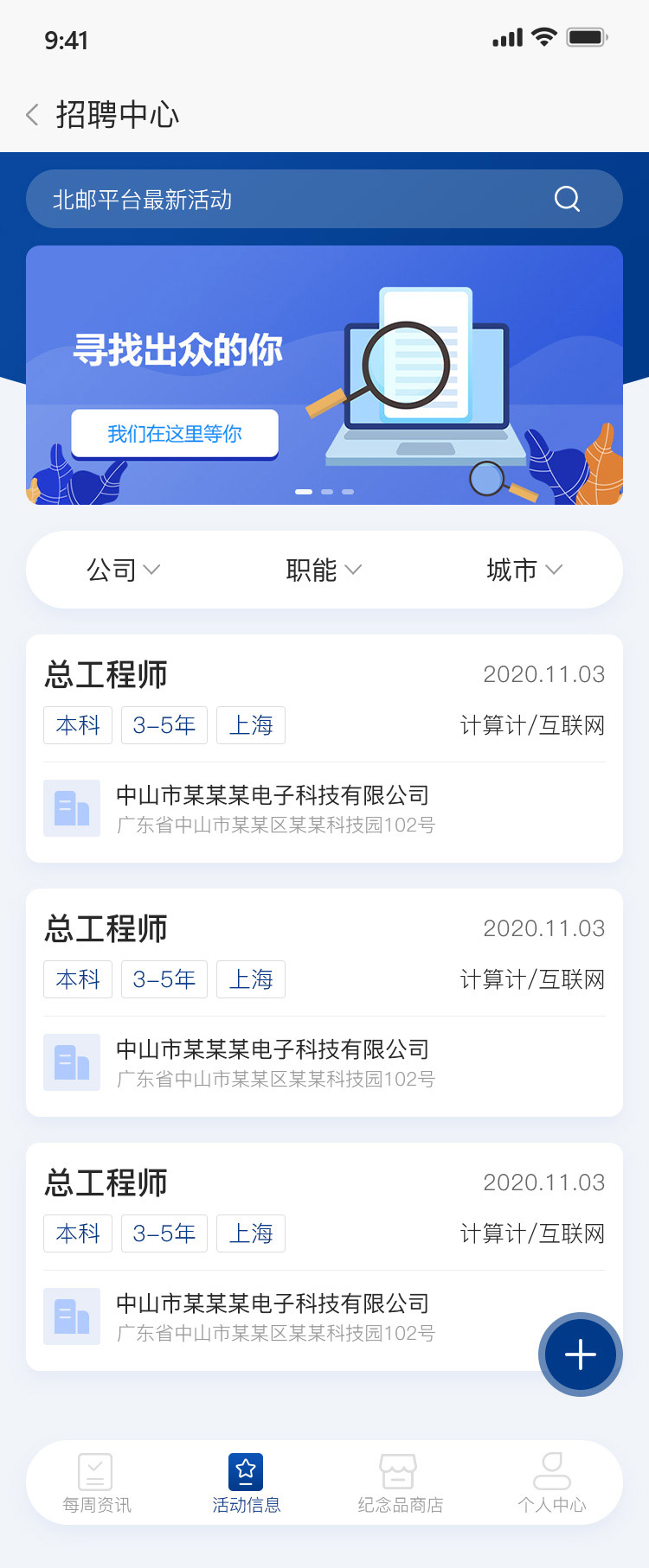 y4514-psd蓝色电商app商店ui设计模板源文件下载-招聘中心首页列表页