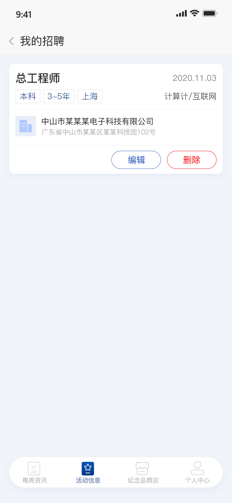 y4538-psd蓝色电商app商店ui设计模板源文件下载查看我的招聘列表页