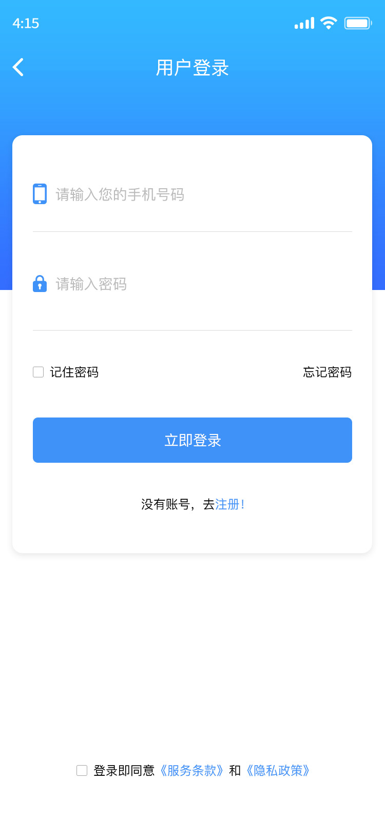 y4373-psd蓝色app移动端ui设计模板源文件下载登录页注册表单