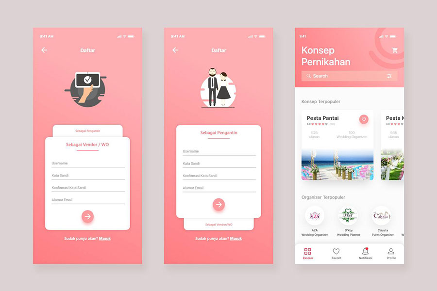 y1510-xd婚庆女性粉红色创意UI设计登录页注册页首页APP简洁设计素材源文件下载
