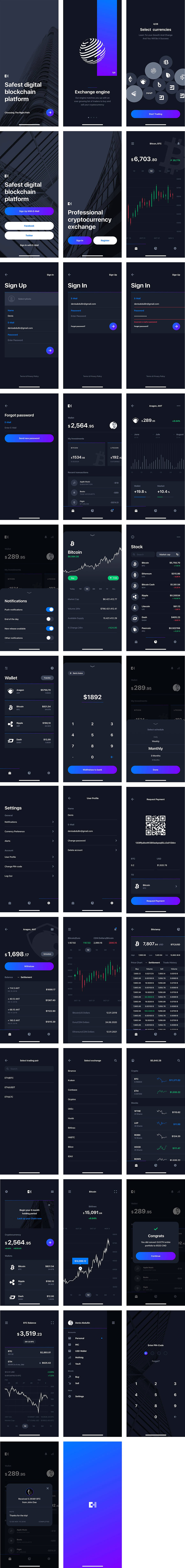 y1694-xd_sketch区块链钱包蓝色UI设计列表页二维码页个人个人中心页首页手势页行情页APP简洁大气设计素材源文件下载