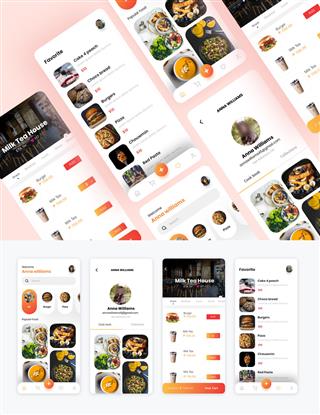 y588-xd餐饮美食订餐点评app橙色ui设计首页列表详情个人中心主页购物车记录支付源文件下载
