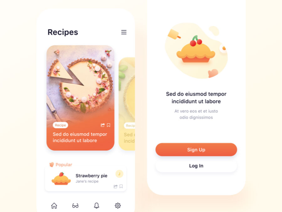y2326-sketch蛋糕店订餐橙色UI设计首页登录页APP简洁大气设计素材源文件下载