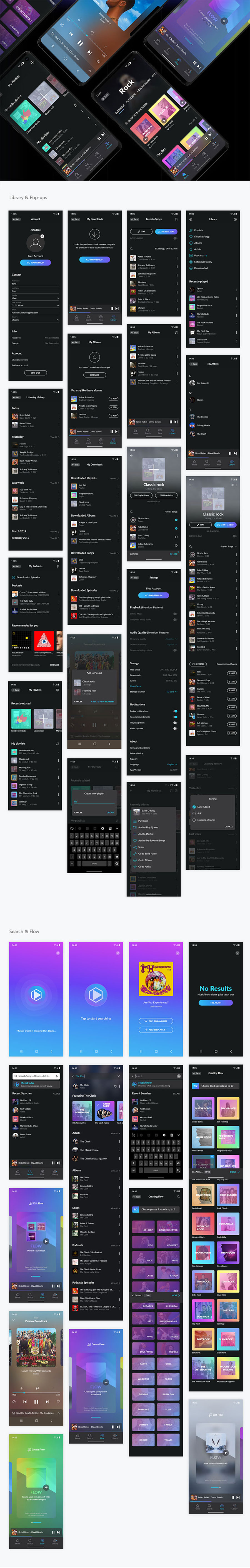 y1626-xd成套音乐暗色UI设计登录页注册页首页音乐列表页搜索页播放页启动页APP简洁设计素材源文件下载