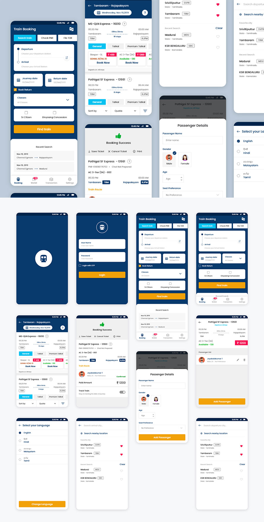 y1512-xd火车票预订蓝色黄色UI设计登录页启动页列表预订页APP简洁设计素材源文件下载