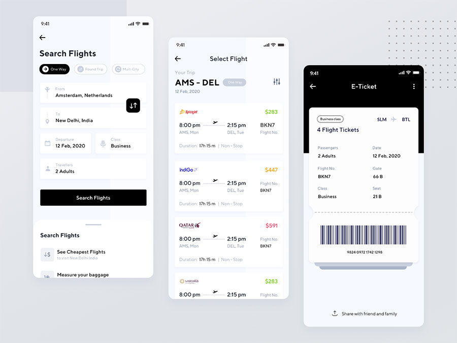 y1514-xd机票预订黑色白色UI设计行程页机票信息页预订页APP简洁大气设计素材源文件下载
