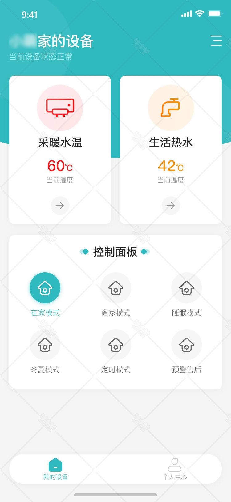 y212-蓝绿色家庭智能设备控制选择主界面ui设计首页简洁干净app移动端手机端应用psd源文件下载