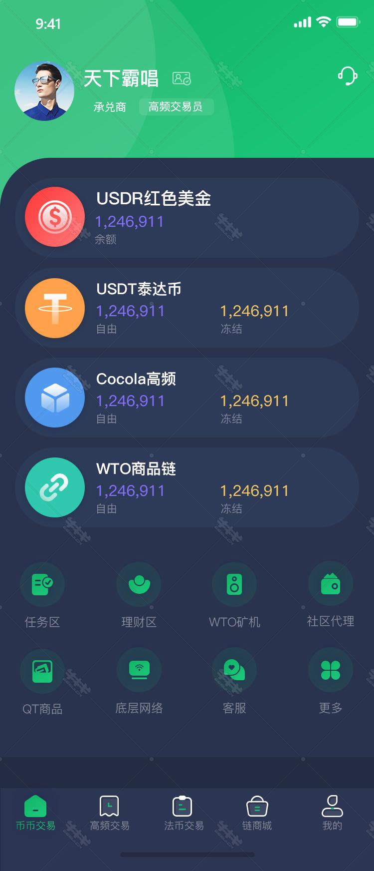 y217-区块链金融个人中心我的app创意模板ui设计psd源文件下载扁平绿色简洁大气