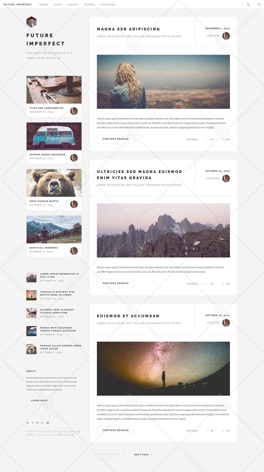 高端 极简 灰白色 博客 列表页 响应式 html模板