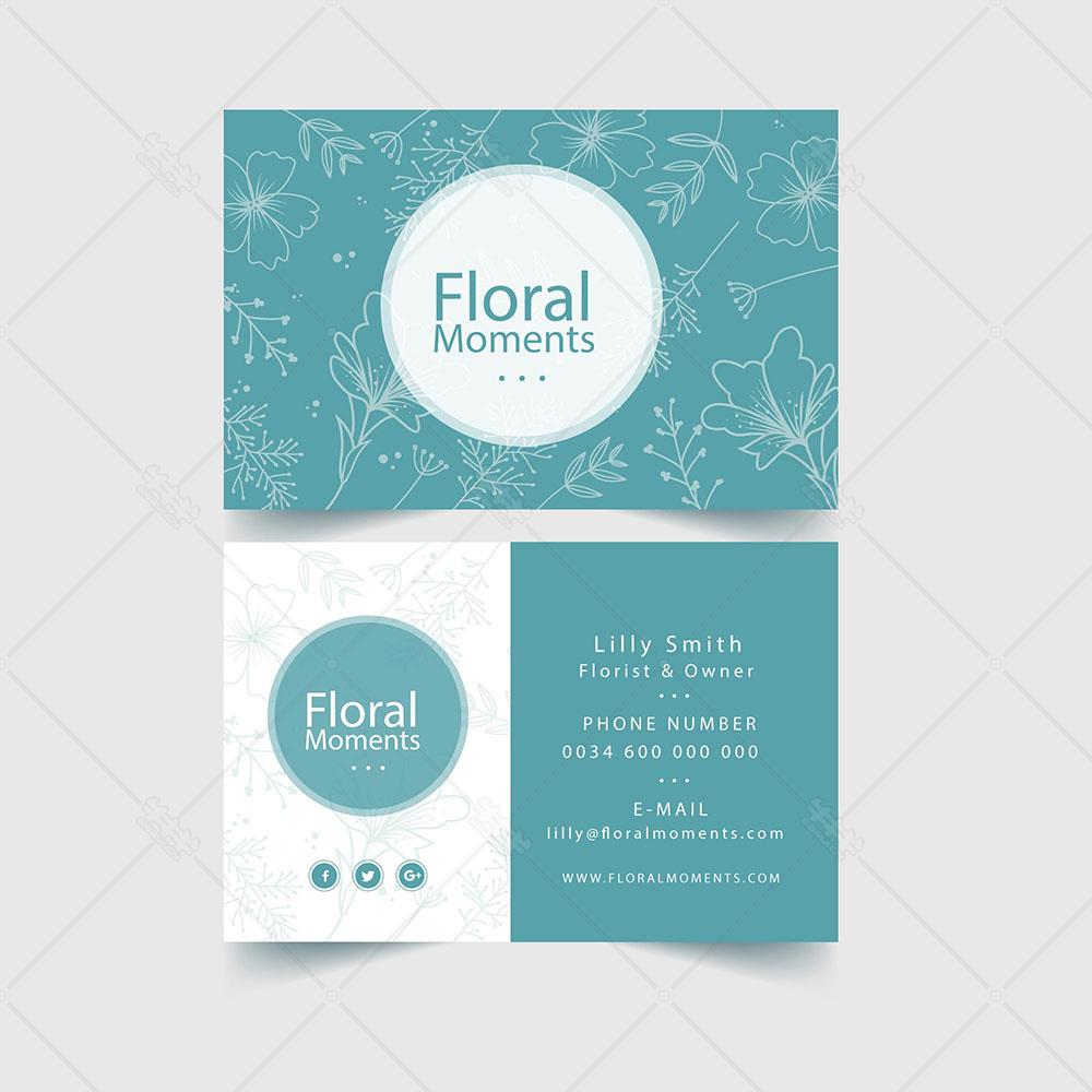 ai 矢量 蓝色 创意 花卉 背景 名片 婚庆 模板 源文件 下载