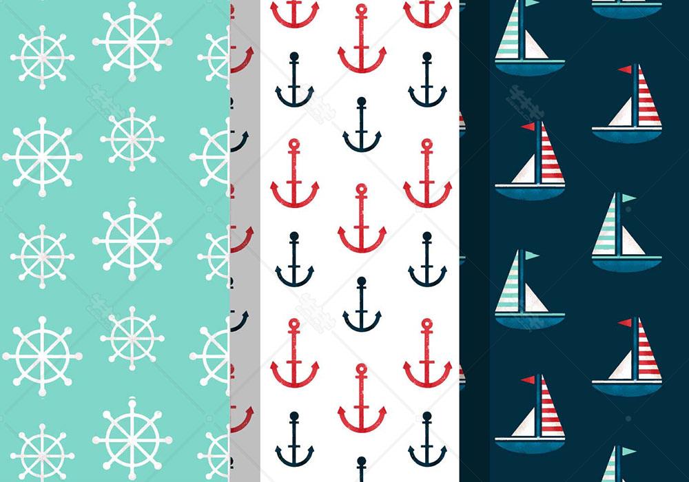 ai 方向舵 锚 帆船 水手 背景 底纹 矢量 素材