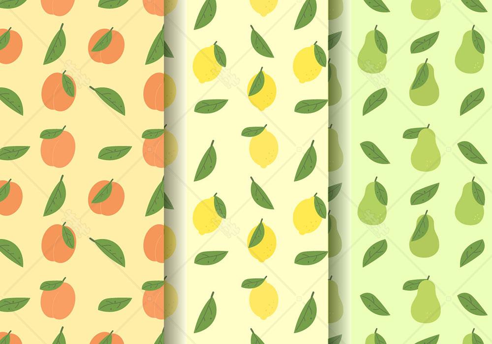 p123-ai矢量清新橙子梨桃子柠檬水果背景底纹矢量素材