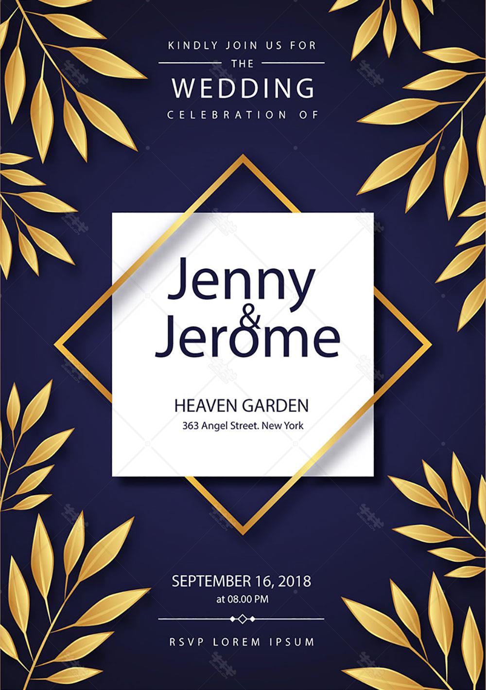 首页>综合素材>p187-ai矢量秋季清新简约植物海拔模板树叶婚礼时尚蓝金