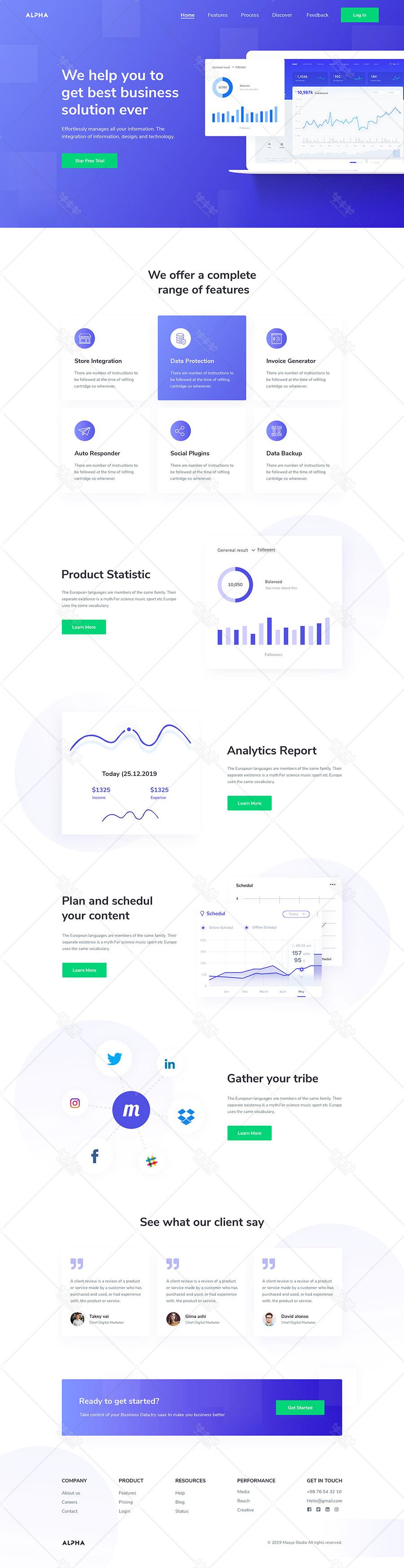 SaaS 设计感 官网 ui设计 pc端 落地页 着陆页 互联网 公司 企业 集团 产品 业务 介绍 特点 优势 首页 蓝紫色 psd 模板 源文件 下载 素材 高端 简洁 专业 插画