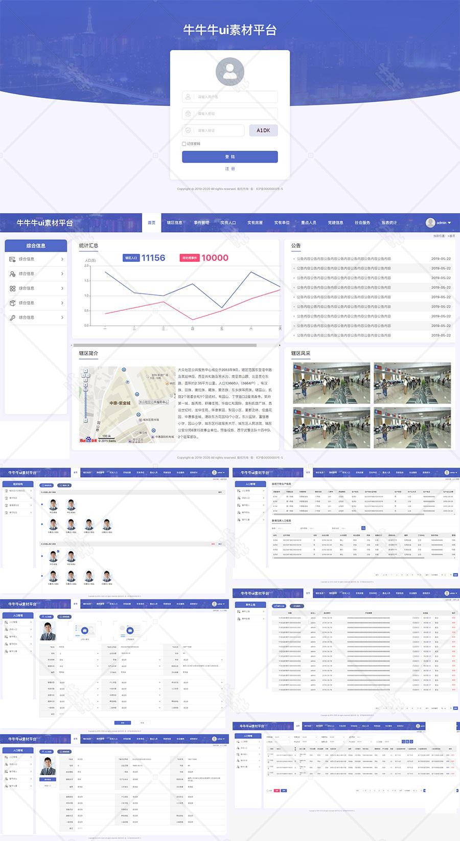 首页>html>h2142-蓝紫色社区网站后台管理系统平台登录注册首页列表页html5模板代码下载