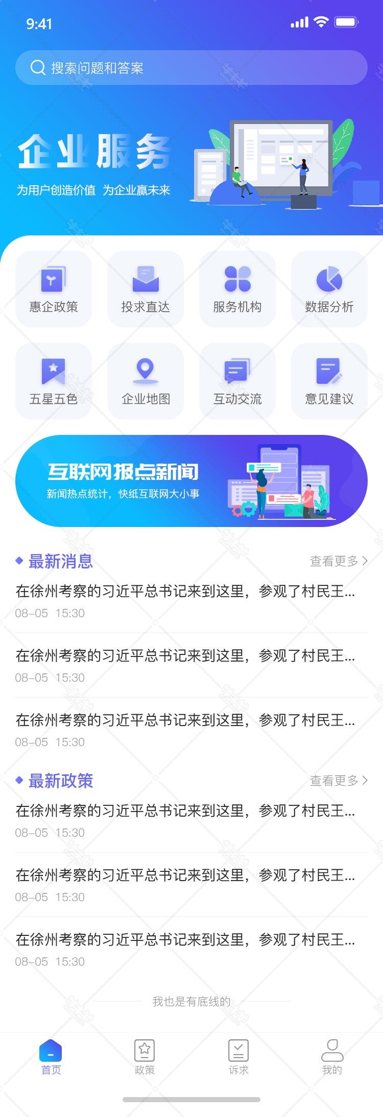 政企 服务 平台 app 首页 ui设计 psd 模板 源文件 下载 渐变 蓝色 手机 移动端